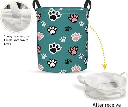 Foruidea Paws Laundry Basket,Laundry Hamper,Collapsible Storage Bin, Oxford Fabric Clothes Baskets,Nursery Hamper For Home,Office,Dorm,Gift Basket