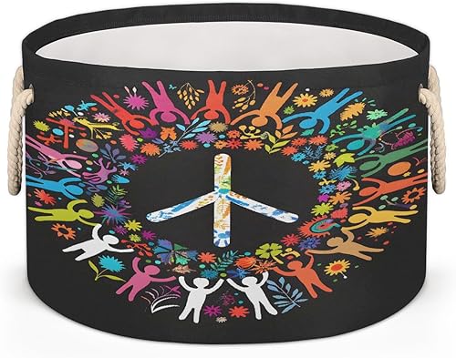 Large Round Laundry Basket Autism Flowers Rainbow Toy Organizers and Storage for Girls Canvas Collapsible Blanket Storage Basket Laundry Hamper Gift Baskets Bedroom Clothes Children Nursery