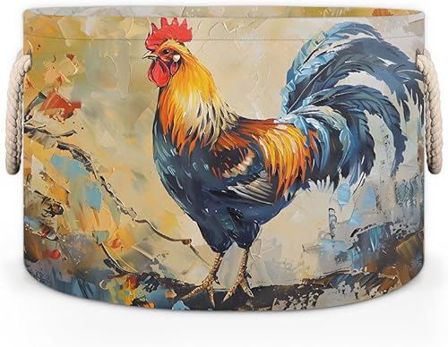 Large Round Laundry Basket Rooster Animal Oil Painting Toy Bins Organizers and Storage for Girls Canvas Collapsible Blanket Storage Basket Laundry Hamper Gift Baskets Bedroom Clothes Children Nursery