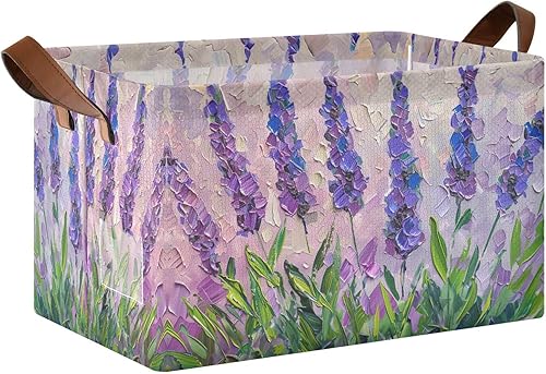 Kigai Lavender Storage Basket Collapsible Toy Storage Bin with Handles Nursery Baby Basket Closet Organizer Holiday Decorative Gift Box