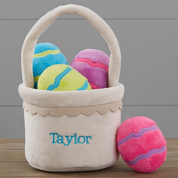 Personalization Universe Personalized Plush Easter Basket with Embroidered Name, Includes Plush Eggs - Ideal for Boys and Girls, Baby's First Easter, Customize with Any Name