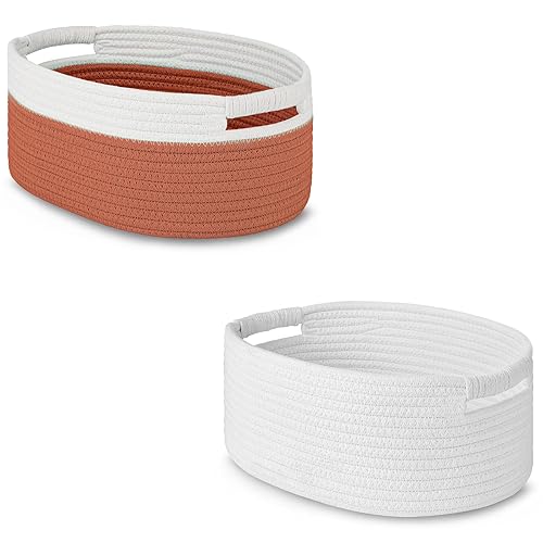 Food Serving Basket Cotton Rope Basket Gift with Handles Baby Gift Basket for Remotes Key Sewing Kits Towel Storage Bedside, Orange