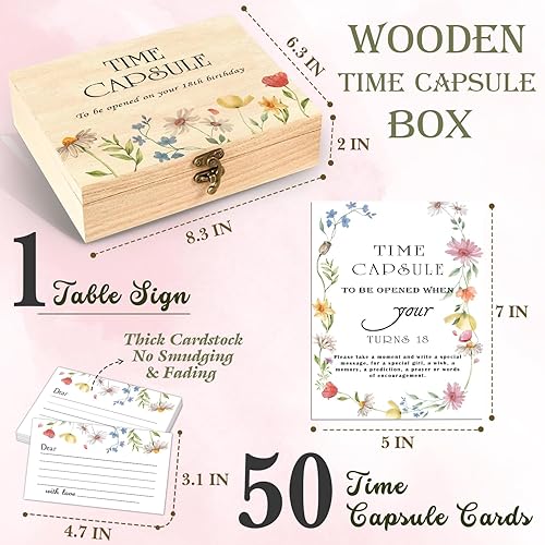 Floral Time Capsule Set, with 50 Message Cards and Floral 1 Time Capsule Sign Box, Baby Memorial Time Capsule Box, Baby Shower Blessing Memory Box for First Birthday, Baby Shower Party Decor
