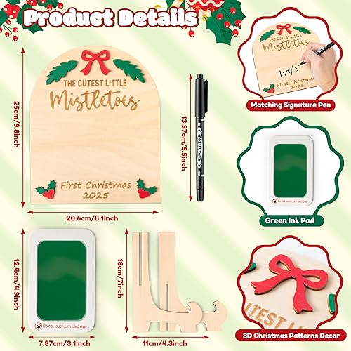 R HORSE DIY Christmas Footprint or Handprint Art Sign with Ink Pad, 3D Mistletoe Newborn Milestone, Baby’s 1st Christmas Footprint Keepsake Craft Gift Little Mistletoe Baby Shower Nursery Decor
