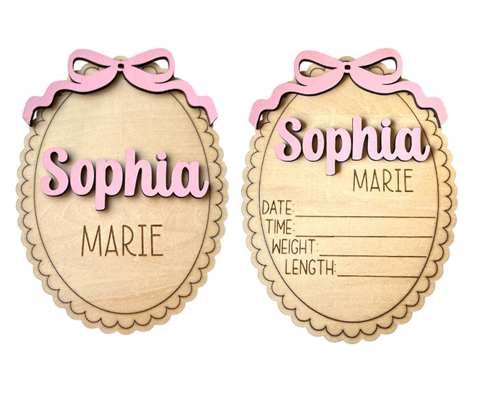 Personalized Baby Announcement Sign with Bow, Custom 3D Layered Scalloped Edge Name & Birth Stat Board for Newborn Photos (Stat Sign)