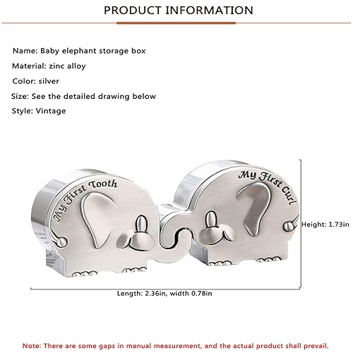 Silver Birth Certificate Holder Set, European-Style Exquisite Elephant Baby Deciduous Teeth Collection Box, Newborn Hair and Teeth Storage Box, Suitable for Newborn Boys and Girls Souvenirs