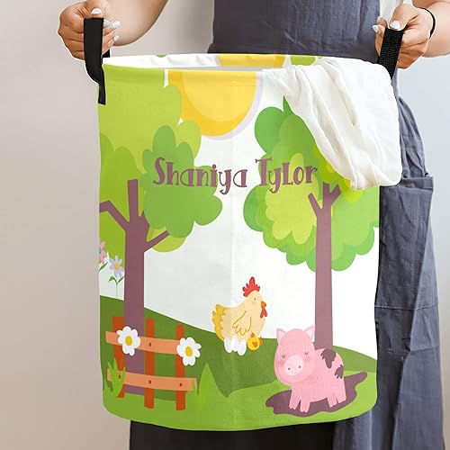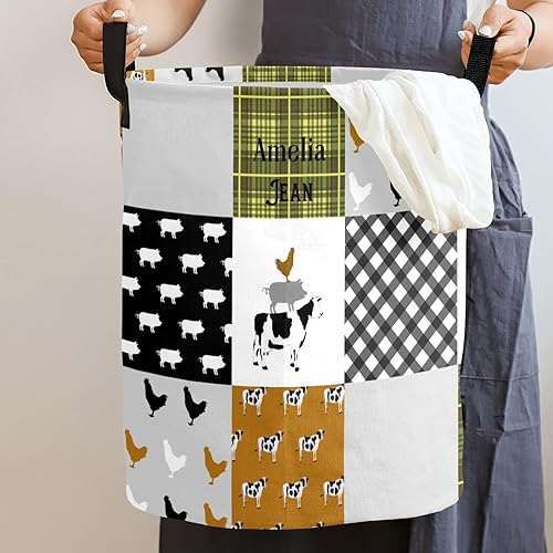 Custom Farm Car Animals Cow Pig Chick Storage Bin, Waterproof Oxford Fabric Clothes Basket Organizer for Laundry Hamper,Toy Bins,Gift Baskets, Bedroom, Clothes,Baby Nursery