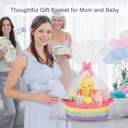 COMSE Small Woven Basket with Gift Bag and Ribbons, Gift Basket Empty, and Diaper Caddy Organizer, Diaper Basket, Baby Car Organizer