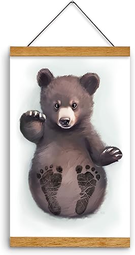 Memory Lane Gifts Co. Baby Footprint Art, Baby Shower Gift, Original Artwork, Nursery Art Keepsake, Baby Bear