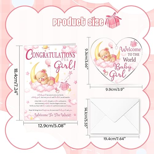 HOWAF New Baby Girl Card, Newborn Baby Girl Cards with Acrylic Hanging Baby Keepsake for Baby Shower New Babys Gifts, Newborn Babys Gifts, Infant Card for Birth of Girl, Congratulations Kids Girls CardS