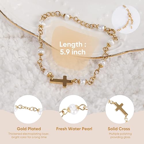 Unique and Meaningful Design: The natural pearls embedded on the christening baby bracelet emit a subtle luster, symbolizing purity and sincere blessings. The cross not only is solid but also carries weight, enhancing the texture of the bracelet. The -plated chain sparkles with a delicate en glow, adding a touch of luxurious elegance to the entire design. Whether as a christening gift or a keepsake, this baptism bracelet allows the wearer to feel a wealth of love and blessings
