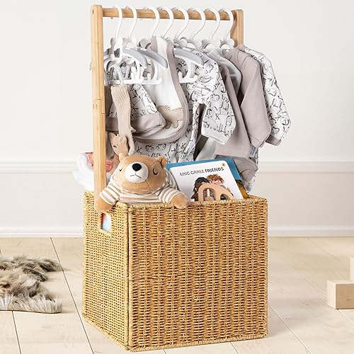 Dual Function: This baby storage crate hamper with handle offers dual functionality of storage and hanging. Compared to other gift containers that only provide storage, our wooden crate comes with a spacious crate and hanging rack, enriching the display form, making it a practical and stylish choice