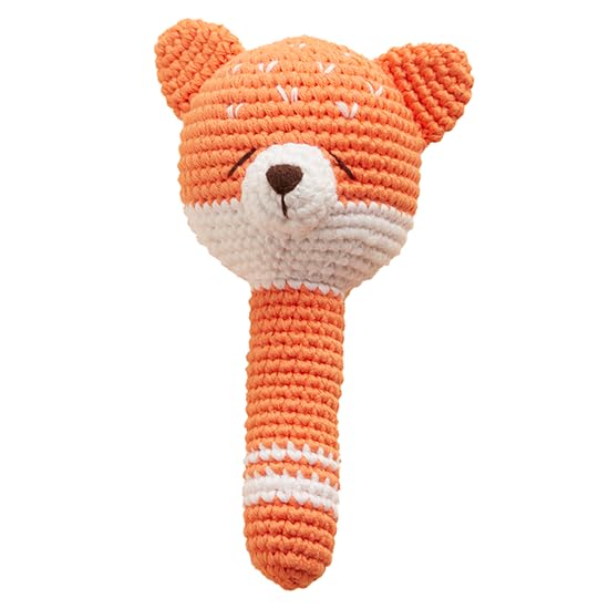 EASY TO GRASP: When creating this wooden crochet stuffed animal rattle, we meticulously considered factors such as your baby's grip strength, the rattle's weight, and materials. As a result, our crochet rattle is perfectly sized for small hands, making it an ideal choice for your little one. These charming grip toys are sure to delight babies as they explore the world of colorful wooden rattles.