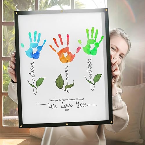 Handmade Keepsake mom craft gifts from kids – Printed on thick, premium archival matte paper, this DIY handprint mothers day sign is built to last. Whether for Mother’s Day, birthday, christmas handprint craft or just because, this unique mothers day handprint craft flower design makes a touching gift she’ll proudly display for years. Ideal mother's day gifts for mom and grandma, handprint mothers day gift mom crafts DIY.