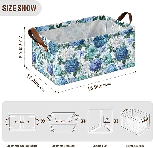Foldable Storage Basket Cube Bins for Organizing Closet Shelves Pantry Baby Clothes Storage Box Blue Teal Floral Hygrangea Nursery Bins with Labels Waterproof Gift Baskets 1 Pc(Multicolored,1pc)