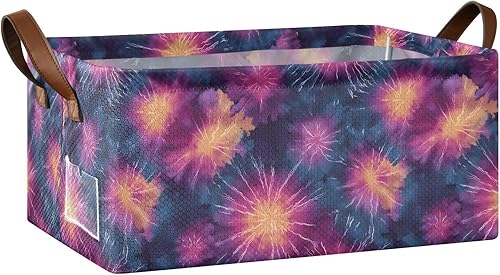 Foldable Storage Basket Cube Bins for Organizing Closet Shelves Pantry Baby Clothes Storage Box Vintage Boho Tie Dye Flower Nursery Bins with Labels Waterproof Gift Baskets 1 Pc(Multicolored,1pc)