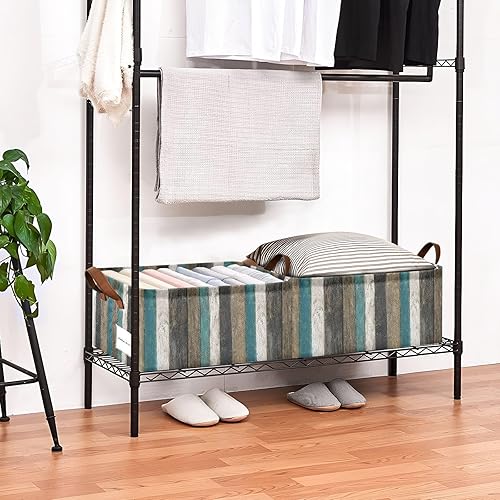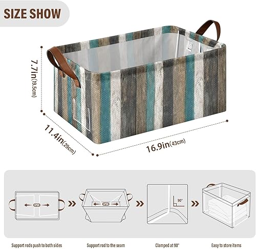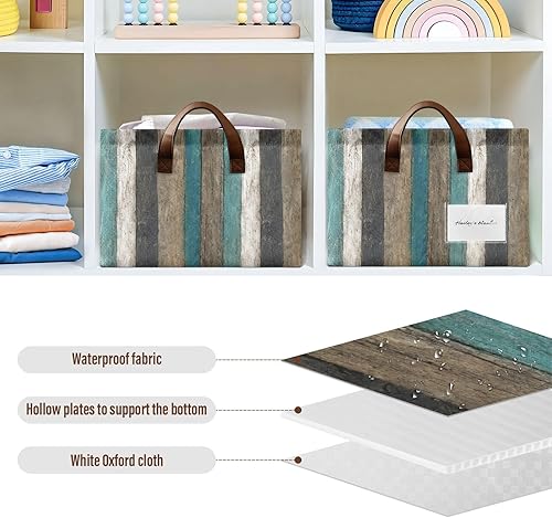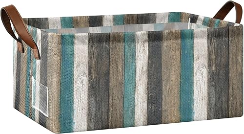 Foldable Storage Basket Cube Bins for Organizing Closet Shelves Pantry Baby Clothes Storage Box Vintage Brown Teal Wooden Nursery Bins with Labels Waterproof Gift Baskets 1 Pc(Multicolored,1pc)