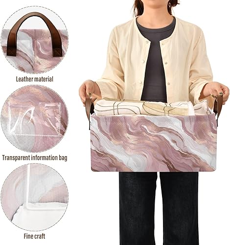 Foldable Storage Basket Cube Bins for Organizing Closet Shelves Pantry Baby Clothes Storage Box White Pink Marble Liquid Nursery Bins with Labels Waterproof Gift Baskets 1 Pc(Multicolored,1pc)