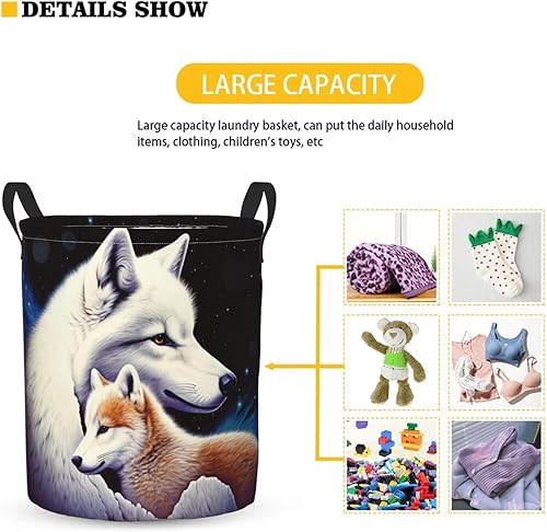 Foruidea Space White Wolf Laundry Basket,Laundry Hamper,Collapsible Storage Bin, Oxford Fabric Clothes Baskets,Nursery Hamper For Home,Office,Dorm,Gift Basket, Medium
