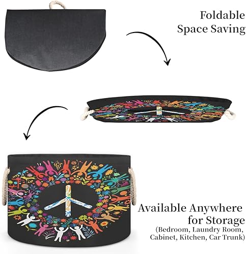 Large Round Laundry Basket Autism Flowers Rainbow Toy Organizers and Storage for Girls Canvas Collapsible Blanket Storage Basket Laundry Hamper Gift Baskets Bedroom Clothes Children Nursery
