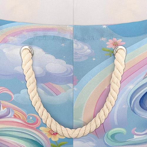 Large Round Laundry Basket Blue Cute Unicorn Toy Organizers and Storage for Girls Canvas Collapsible Blanket Storage Basket Laundry Hamper Gift Baskets Bedroom Clothes Children Nursery