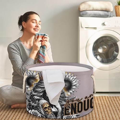 【Portable, Collapsible & Durable Material】: The outer layer of the large round organization storage basket is made of sturdy canvas, while the inner layer is made of insulating PE fabric. The thick cotton rope handles are easy to grasp and make for easy and comfortable carrying when needed. The sturdy bottom keeps the home storage box standing upright.