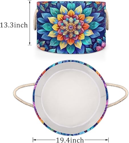Large Round Laundry Basket Mandala Ethnic Rainbow Toy Bins Organizers and Storage for Girls Canvas Collapsible Blanket Storage Basket Laundry Hamper Gift Baskets Bedroom Clothes Children Nursery