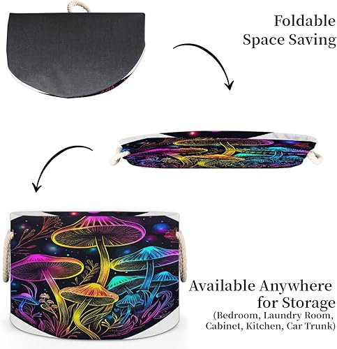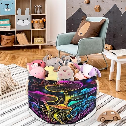 Large Round Laundry Basket Mushroom Beautiful Abstract Toy Bins Organizers and Storage for Girls Canvas Collapsible Blanket Storage Basket Laundry Hamper Gift Baskets Bedroom Clothes Children Nursery