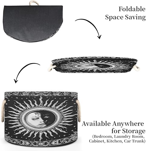 Large Round Laundry Basket Sun Face Abstract Flower Toy Bins Organizers and Storage for Girls Canvas Collapsible Blanket Storage Basket Laundry Hamper Gift Baskets Bedroom Clothes Children Nursery