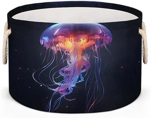 Ocean Jellyfish Round Baby Gift Baskets,Jellyfish Round Decorative Storage Box Canvas Fabric Organizer with Handles,Baskets Bin for Home Shelves Closet Nursery Gifts