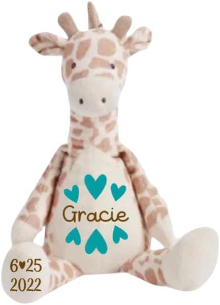 The perfect gift to celebrate the birth of a precious baby! This Giraffe measures approximately 9.5" long x 8." wide, when sitting down. The perfect keepsake for your little bundle of joy!