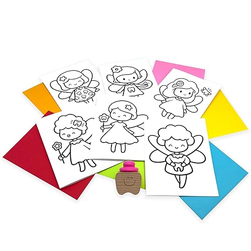 Our kids loved writing a Tooth Fairy letter, so this kit includes a set of 6 coloring cards with sweet illustrations of tooth fairies to color and write a note inside (or the "tooth fairy" could write a note to the child) and the child can color the card. There is space on the back for the child's name and age.