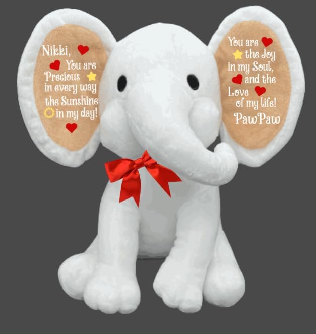 This plush elephant comes customized with your child's name and is perfect for a birthday, sibling and baby pictures!